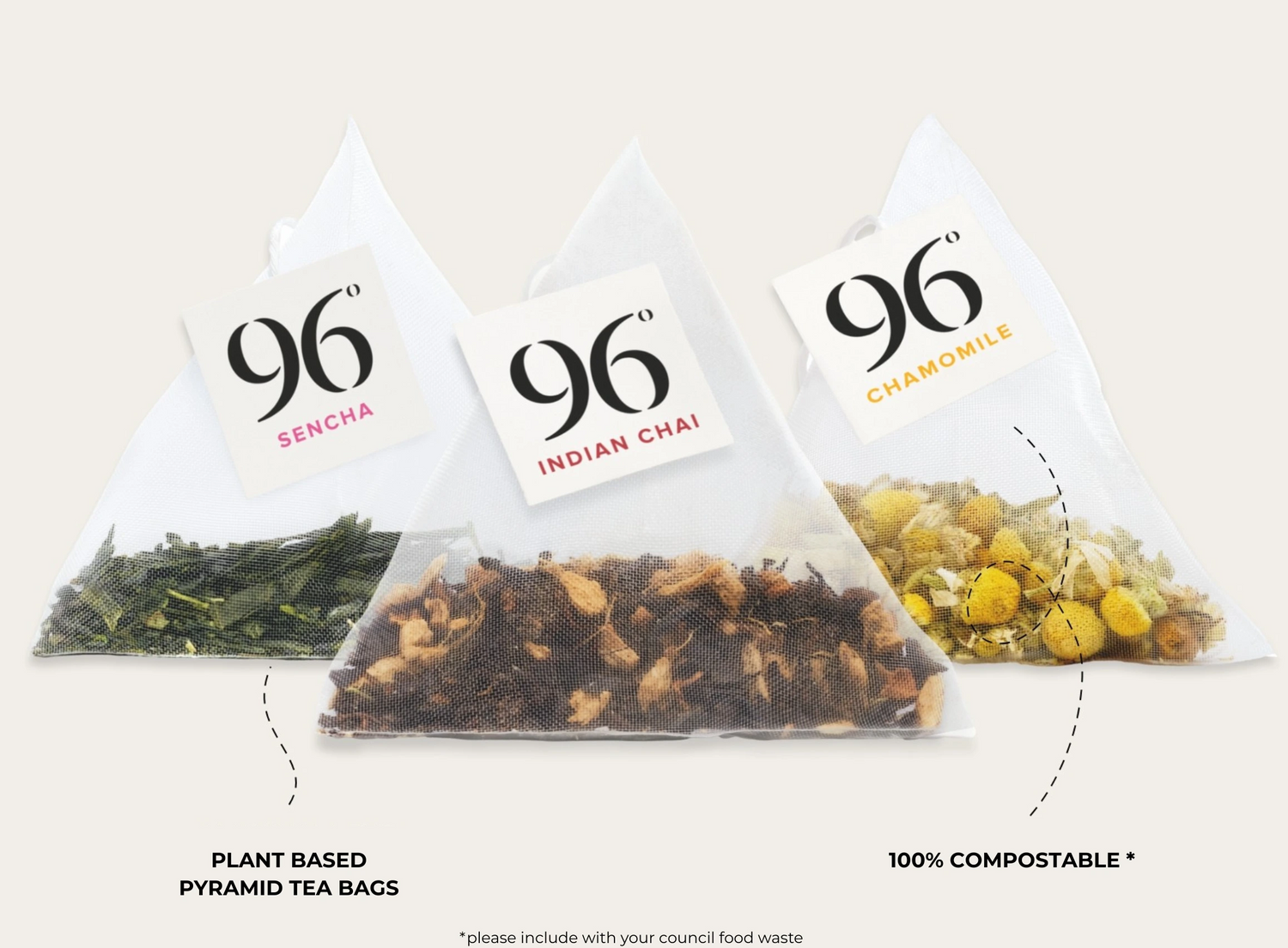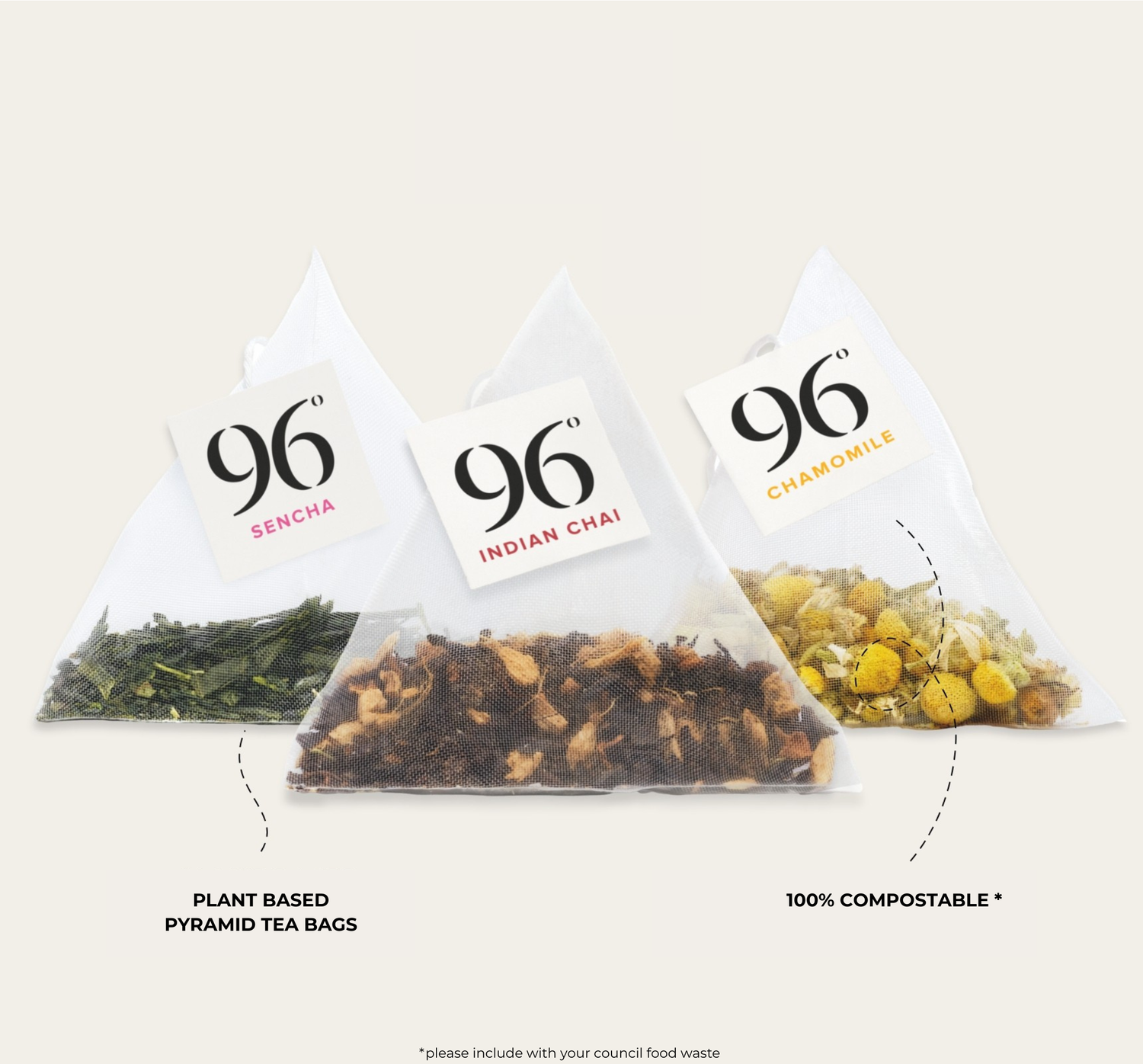 At 96˚, packaging is a critical building block in ensuring we meet our commitment of delivering an exceptional cup of tea, each and every time. Recyclability, which is a core value of our business, runs across all aspects of our packaging.